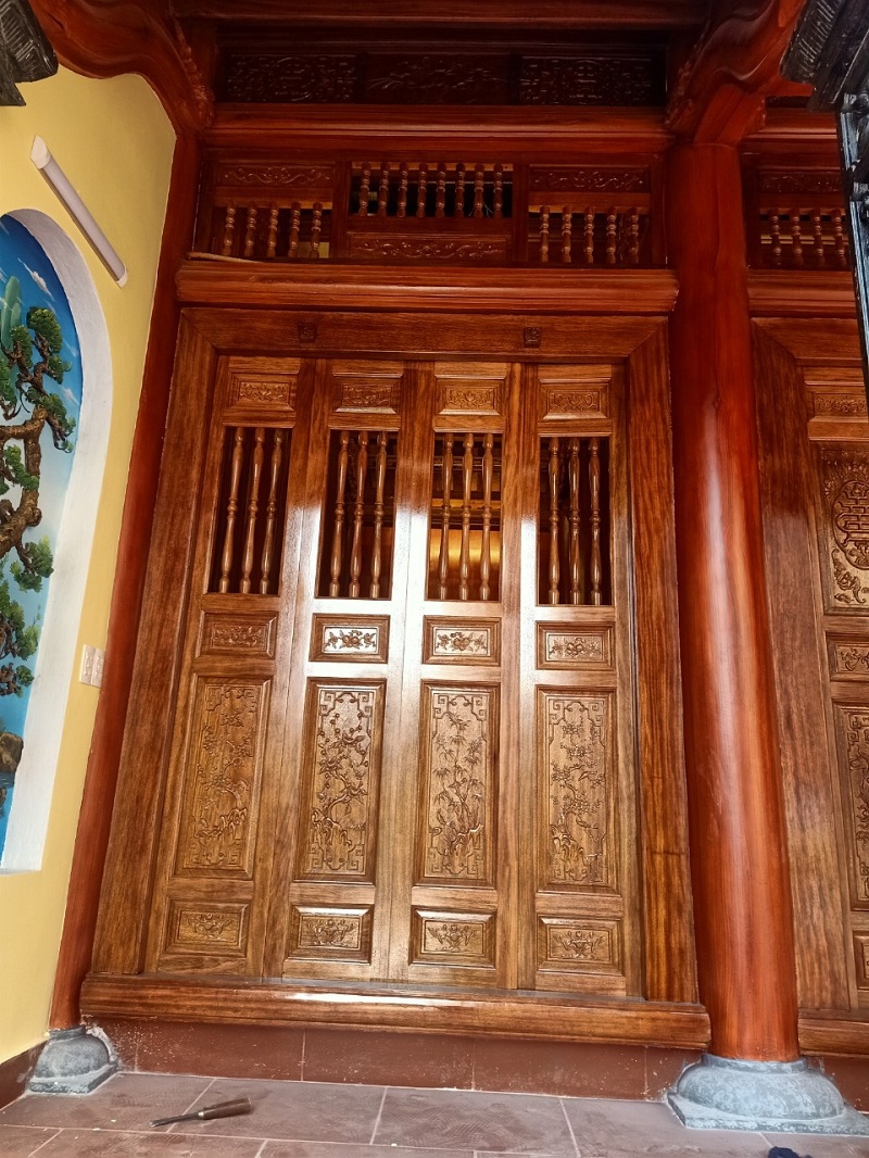Dĩ sẽ nằm giữa tường và thềm giữa để dựng tủ trưng bày, đồng thời 2 bên cột cái sẽ thiết kế thêm câu đối và bức hoành phi.