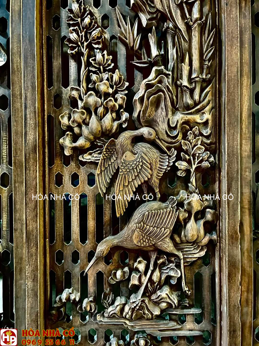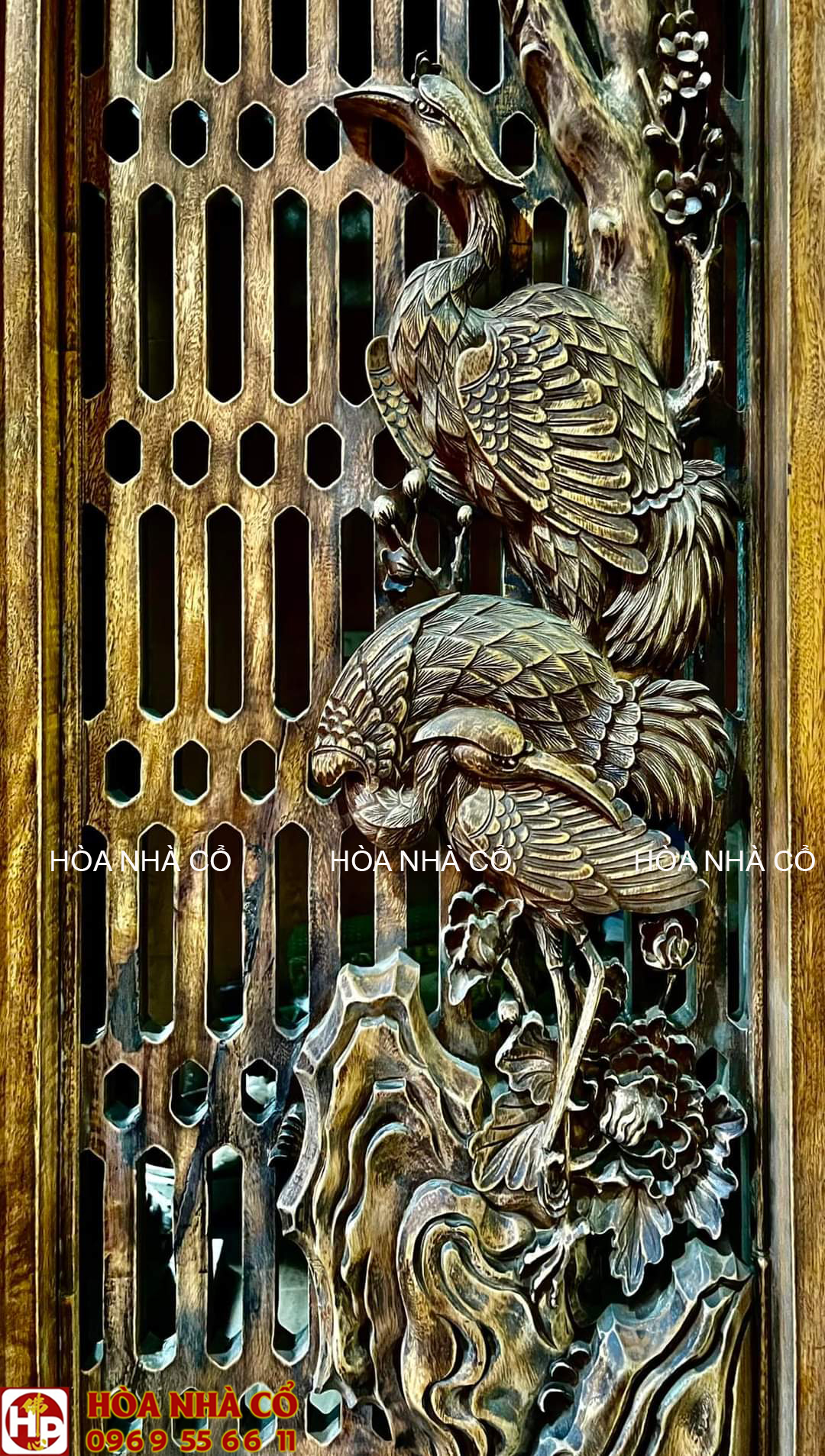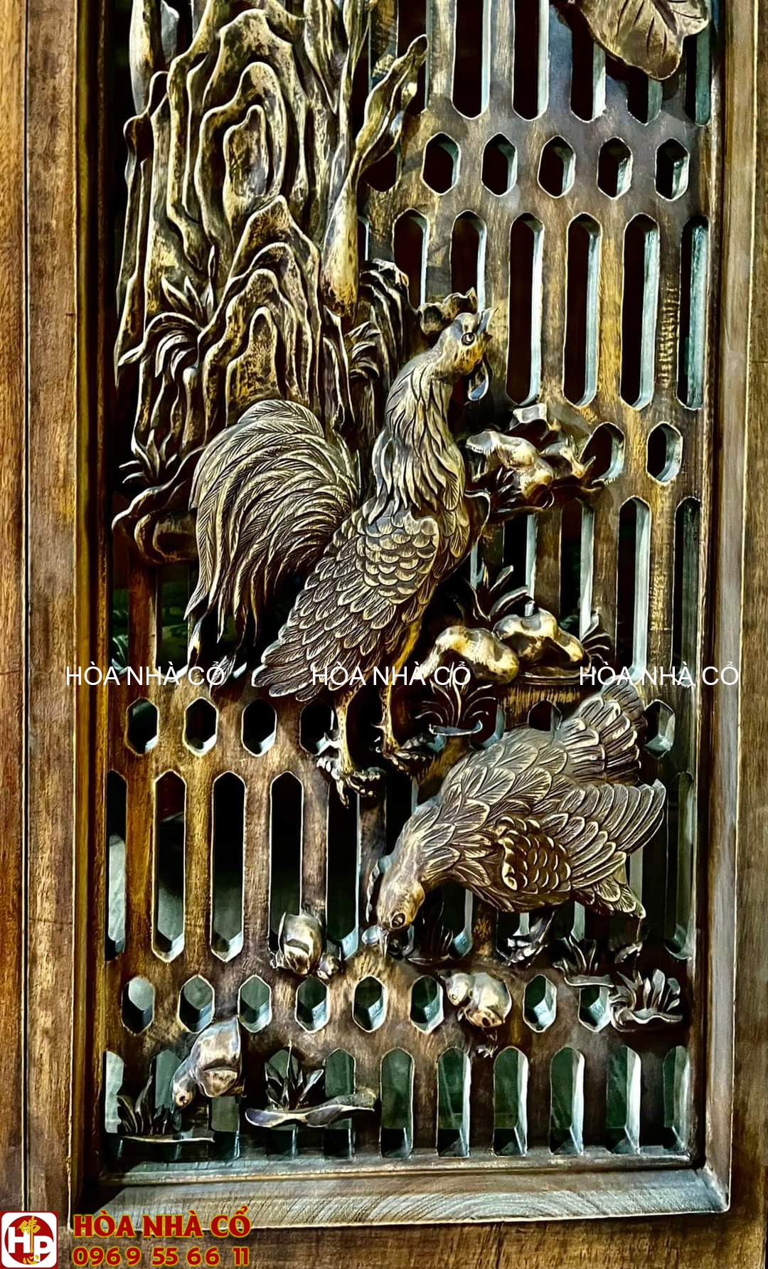 Sự kết hợp độc đáo giữa tranh điêu khắc gỗ trên cửa bức bàn