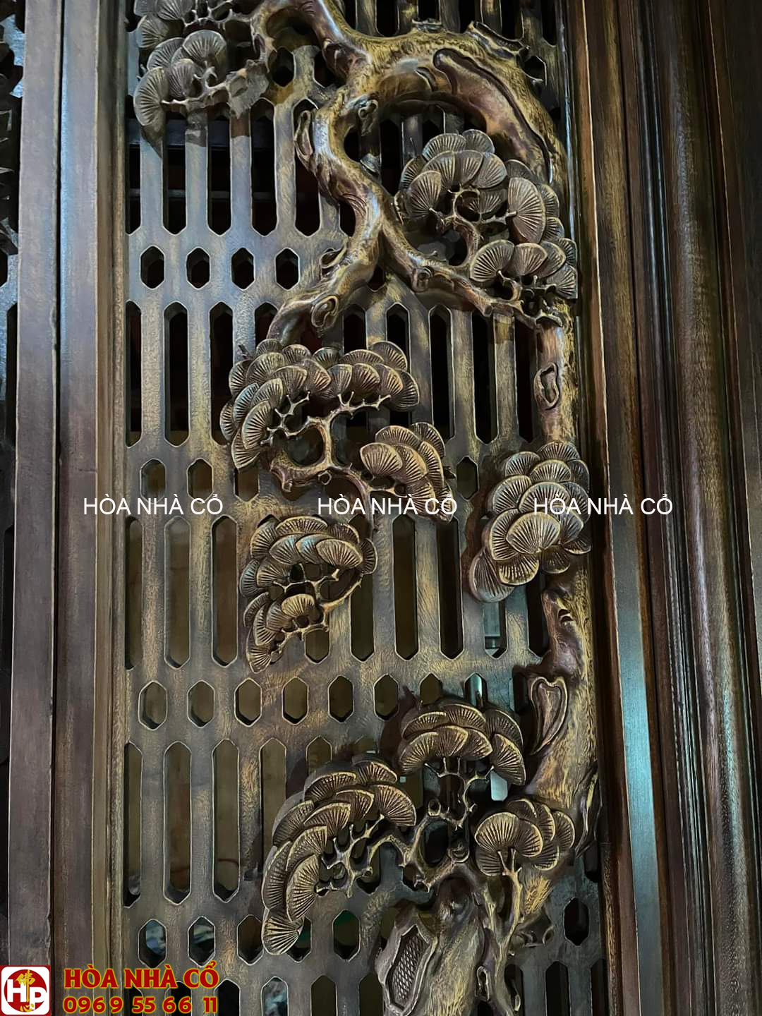 • Hoa văn chạm khắc là phần quan trọng và không thể thiếu trên nhà gỗ cổ truyền. Đặc biệt là ở những bộ phận nổi bật như cửa bức bàn, đây là phần mà khách đến thăm nhà sẽ được chiêm ngưỡng đầu tiên.