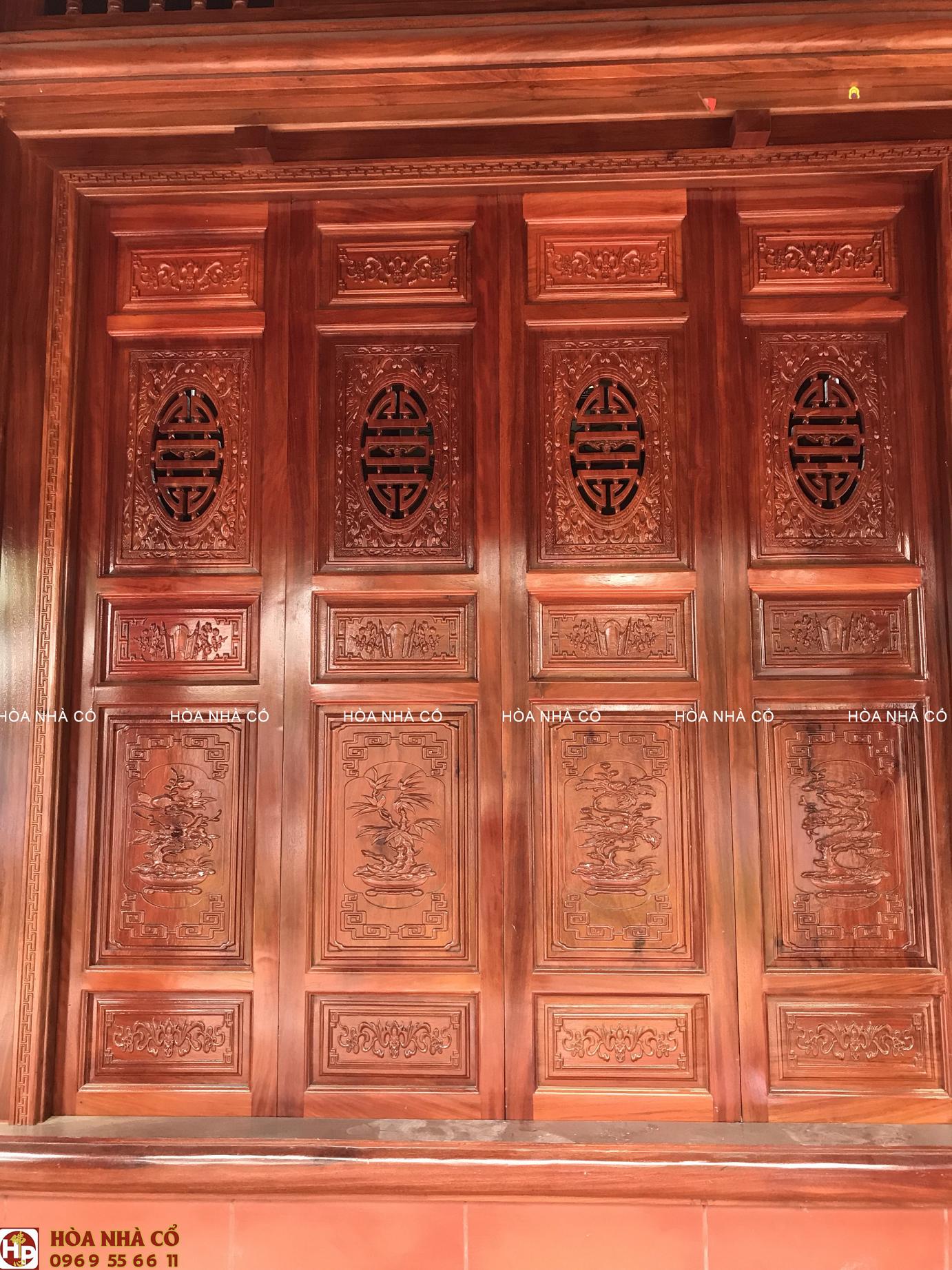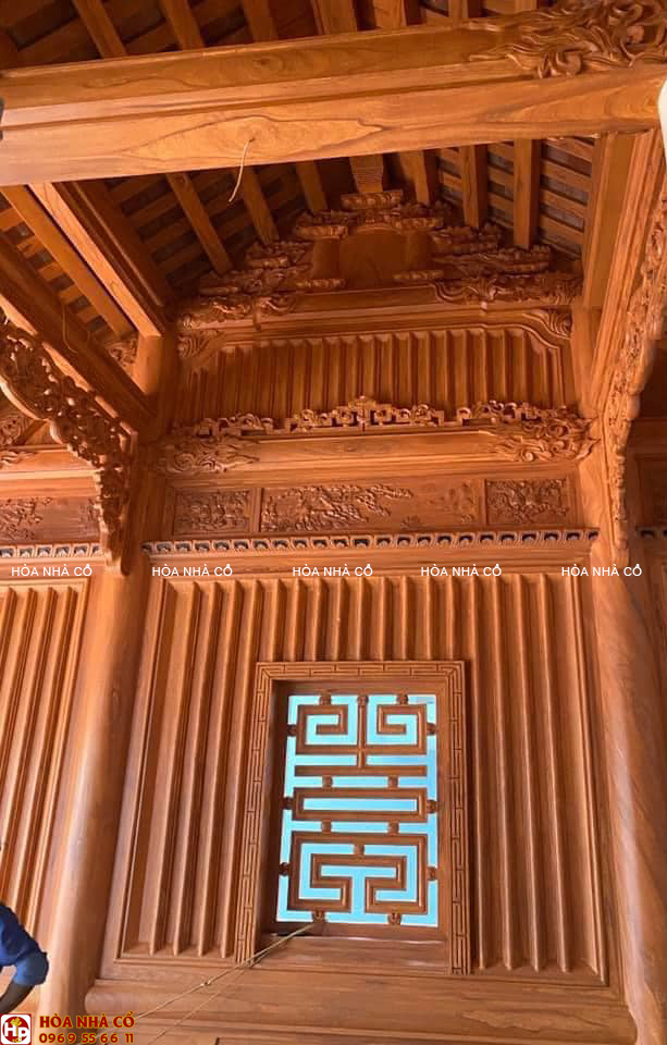 Đối với một căn nhà gỗ cổ truyền Bắc Bộ đặc điểm nổi bật đó là những đường nét hoa văn được chạm khắc thủ công bằng tay. Những hoa văn này không chỉ tôn vinh lên vẻ đẹp, mà còn tạo nên diện mạo mới cho căn nhà gỗ cổ truyền